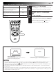 EN SPECIAL FEATURES TV Multi-brand Remote Control TV Your remote control can operate the basic functions of your TV set. In addition to JVC TVs, other manufacturer’s TVs can also be controlled. Before you start . . . ● Turn on the TV using its remote control. VCR TV/VCR 1 2 3 4 5 6 7 8 9 2 0 CANCEL NUMBER 4 TIMER 1 SET TV BRAND CODE Refer to the chart below. While holding down TV on the recorder's remote control, enter your TV’s brand code using the NUMBER keys, then press STOP.