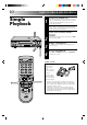 SIMPLE PLAYBACK AND RECORDING Simple Playback 1 LOAD A CASSETTE Make sure the window side is up, the rear label side is facing you and the arrow on the front of the cassette is pointing towards the VCR. Don’t apply too much pressure when inserting. W RE STOP/EJECT ● The VCR’s power comes on automatically. ● The counter is automatically reset to "0H 00M 00S". ● If the cassette's record safety tab has been removed, playback begins automatically.
