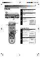 INITIAL SETTINGS (cont.) PUSH JOG ™/£ OK MENU Clock Setting 1 ACCESS CLOCK SET SCREEN Place the arrow at the Initial Set screen next to “CLOCK SET” by pressing CH5∞, then press OK. INITIAL SET =CLOCK SET LANGUAGE SELECT 5/8 6 – + ™ £ PRESS (5,∞), THEN (OK) PRESS (MENU) TO END q CH 2 Press the appropriate CLOCK SET NUMBER keys to set the DATE 1/ 1/96 MON date and time (if only 1 TIME – – : – – AM digit, press "0" first). Press CH▲▼ to set AM/PM, then press OK.