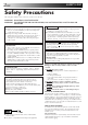 The default setting of On-Screen Display language for this recorder is RUSSIAN. VIDEO CASSETTE RECORDER ENGLISH CONTENTS SAFETY FIRST HR-J458EE HR-J258EE HR-J255EE 2 Safety Precautions ...................... 2 INSTALLING YOUR NEW RECORDER 3 Basic Connections ..................... 3 INITIAL SETTINGS 4 Video Channel Set ..................... 4 Auto Set Up ............................... 6 On-Screen Displays ................... 8 Select Language ......................... 9 Clock Set ..................