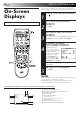 EN INITIAL SETTINGS (cont.) You can choose whether or not to have various operational indicators appear on screen, by setting this function ON or OFF. 1 Turn on the TV and select the VIDEO channel (or AV mode). 2 1 2 3 3 2 4 5 6 7 8 9 0 4 4 OK 3 Press . ACCESS MAIN MENU SCREEN Press MENU. ACCESS FUNCTION SET SCREEN Place the pointer next to "FUNCTION SET" by pressing PUSH JOG %fi, then press OK or PUSH JOG .