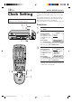 EN INITIAL SETTINGS (cont.) Clock Setting Perform clock setting only if the clock has not been set correctly by the Plug & Play setting or if you use a cable box. Access the Clock Set screen to perform the Semiauto or Manual Clock Set. Each procedure starts from step 4 after preparation steps below are finished. If you use a cable box, set the clock manually. (Z pg. 12) Turn on the VCR and the TV, and select the VCR channel 3 or 4 (or AV mode) on the TV.