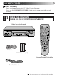 REAR VIEW 1 2 3 5 6 1 Mains Power Cord supplies power to recorder. Z pg. 6 2 S OUT Connector enables S-VIDEO connection to TV or second recorder. Z pg. 7, 34 3 AV1 (L-1) IN/OUT Connector enables AV connection to TV or second recorder; input recordable when "L-1" selected. Z pg. 6, 34 4 ANT. IN Connector enables connection of aerial. Z pg. 6 5 AUDIO OUT (L/R) Connectors enable connection of audio cassette recorder, TV or second video recorder for dubbing. Z pg.