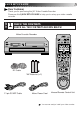 QUICK SET UP GUIDE Dear Customer, STEP Thank you for purchasing this JVC Video Cassette Recorder. Please use this QUICK SET UP GUIDE to help you to set up your video cassette recorder. 1 CHECK THE CONTENTS CHECK ALL THE CONTENTS SHOWN BELOW Video Cassette Recorder VCR TV SAT A/B AUDIO – –:– – TV/VCR ENTER/ENTREE STANDBY/ON T 1 DV VHS PULL - OPEN W 2 3 FADE/WIPE EFFECT ON/OFF 4 5 6 PULL - OPEN VPS/PDC DAILY/QTDN.