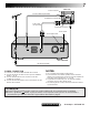 SUBSIDIARY INFORMATION (cont.) REAR VIEW 1 2 3 AV1 IN/OUT (L-1) S OUT AC IN (DV/VHS) ANT. IN AUDIO OUT (DV/VHS) AV1 OUT L COMP. Y/C R AV2 IN/DECODER (L-2) RF OUT 4 5 6 1 ANT. IN Connector enables connection of aerial. Z pg. 6, 7 2 S OUT Connector enables S-VIDEO connection to TV or second recorder. Z pg. 7, 42 3 AV1 IN/OUT Connector enables AV connection to TV or second recorder; input recordable when "L-1" selected. Z pg.