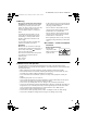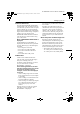 HV-32D25EJW / LCT1271-001A-U / ENGLISH HV-32D25EJW.fm Page 33 Monday, October 21, 2002 1:19 PM Using the TV’s menu REAR SPEAKER: ON: Choose when surround speakers are connected. OFF: Choose when surround speakers are not connected. SUBWOOFER: INT.: Choose to use the TV woofer for the bass sound. • Bass sound does not come from the other speakers. EXT.: Choose when using an external subwoofer. No sound comes from the TV woofer. • Bass sound does not come from the other speakers.