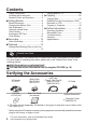 - Contenido Precauciones de seguridad ................. 2 IReproducción ........................... 13 Comprobación de los accesorios ........ 4 Reproducción y eliminación de archivos Nombres de piezas y funciones ........... 5 de esta unidad ................................... 13 Reproducción en un televisor ............ 14 IIntroducción ................................ 6 Diferencias del modelo ........................ 6 ICopia ........................................ 16 Carga de la batería .................