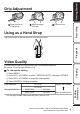 - Getting Started Grip Adjustment Close the lever . Recording Adjust the length of the belt Open the lever on the strap lock Using as a Hand Strap . Playback Adjust the length of the belt and loop it around your wrist. Video Quality This unit can perform recording in both high and standard definition. By default, it is set to high definition (LS). Press MENU. Press UP/< or DOWN/> to select “VIDEO QUALITY” and press OK/INFO. Press UP/< or DOWN/> to select the video quality. Press OK/INFO.