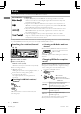 Opérations de base Panneau de commande Télécommande Molette de commande Fenêtre d’affichage Fente d’insertion Éjection d’un disque Retrait du panneau Prise d’entrée AUX Prise d’entrée USB Capteur de télécommande Visez la télécommande directement en direction du capteur. N’EXPOSEZ PAS à la lumière directe du soleil. Quand vous appuyez ou maintenez pressées les touches suivantes...