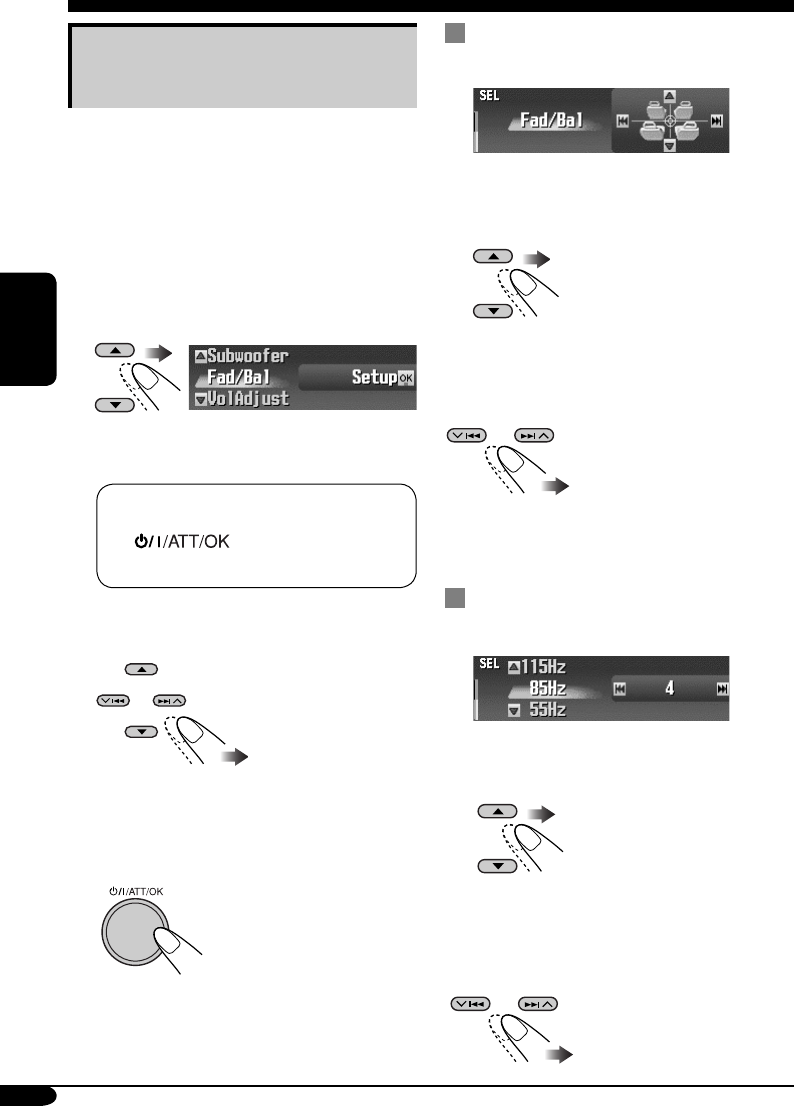 —“Fad/Bal”, “Subwoofer” ou