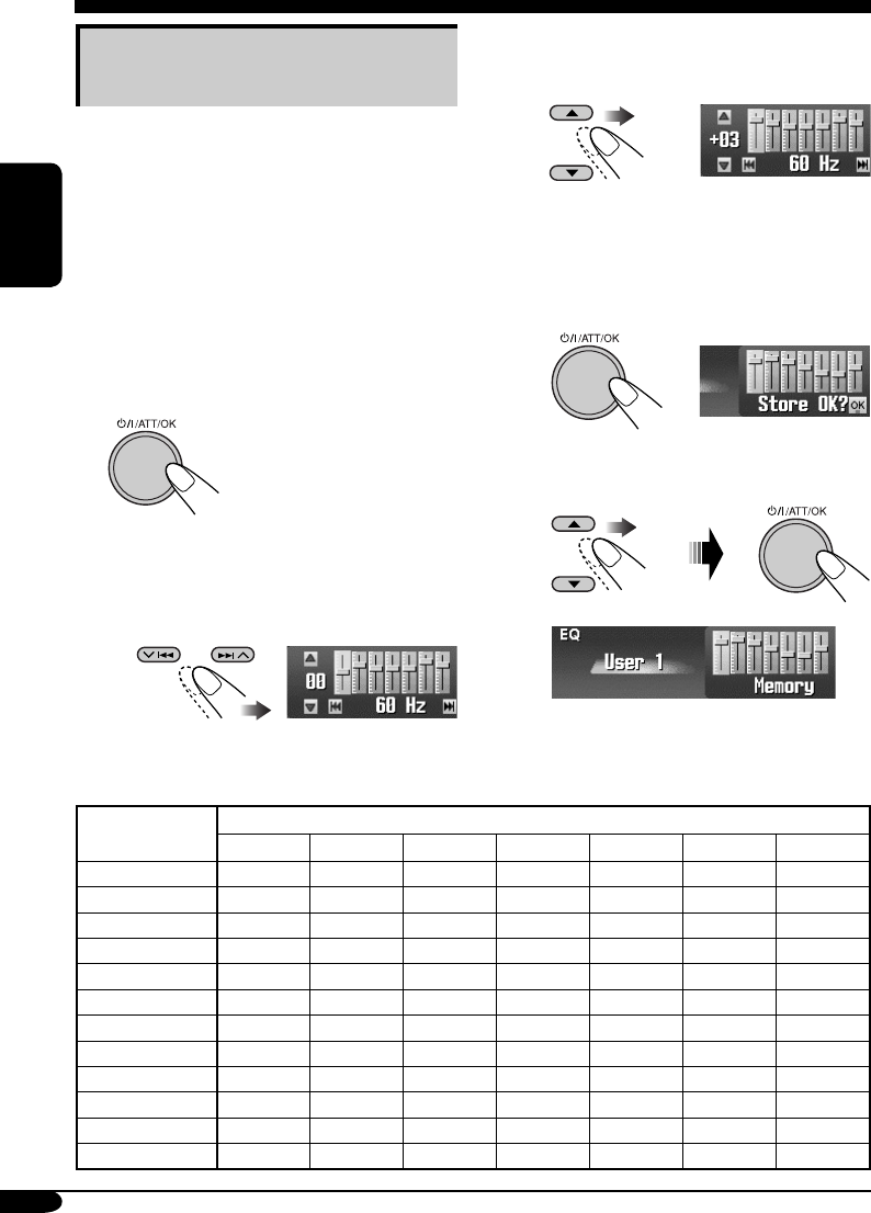 Η παρακάτω λίστα δείχνει τις προεπιλεγµένες ρυθµίσεις επιπέδου συχντητας για κάθε