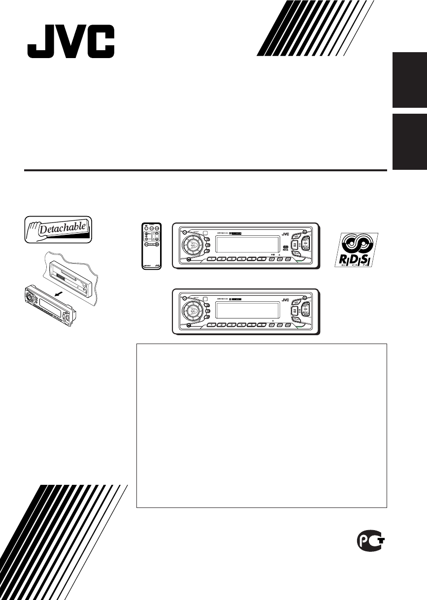 Having TROUBLE with operation? Please reset your unit Refer to page of How to reset your unit Затруднения при эксплуатации? Пожалуйста, перезагрузите Ваше устройство Для получения информации о перезагрузке Вашего устройства обратитесь на соответств ующую страницу VICTOR COMPANY OF JAPAN, LIMITED EN, RU COVER.KS-FX915R/815[EE]/f V J 2 C 0101AOMCAPJES 00.12.