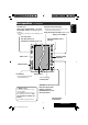 To eject the disc ENGLISH SD operations To open/close the monitor panel push in the SD card lightly. Caution: Do not release your finger quickly; otherwise, the SD card may pop out from the unit. Push in the SD card until you hear a clicking sound. 3: Restart playback 7: Stop Now Reading... SD Press: Select track Hold: Reverse/forward search Press: Select folder Hold: Display Folder List (☞ page 19) 15: 45 This unit can play MP3/WMA/JPEG tracks stored in SD cards.