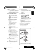 ENGLISH Sound equalization POWER]ON Freq. Freq. Freq. Freq. Freq. Freq. Freq. 60Hz 150Hz 400Hz 1kHz 2.5kHz 6.3kHz 15kHz +03 +02 +02 00 +01 +01 +03 Selecting sound mode Storing your own adjustment ~ You can store your adjustment into User 1, User 2, and User 3. Ÿ Setup Surround Equalizer Sound Mode List 1 Repeat steps ~ and Ÿ, then in step !... Flat Hard Rock R&B Pop Jazz Dance Setup Surround Equalizer Sound Mode List Freq. Freq. Freq. Freq. Freq. Freq. Freq. ! Select a sound mode.