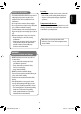 Store stations manually. (☞ page 50) Static noise while listening to the radio. Connect the antenna firmly. ENGLISH FM/AM Symptoms SSM automatic presetting does not work. Remedies/Causes Disc in general Disc can be neither recognized nor played back. Eject the disc forcibly. (☞ page 6) Disc cannot be ejected. Unlock the disc. (☞ page 51) • Recordable/Rewritable discs cannot be played back. • Tracks on the Recordable/Rewritable discs cannot be skipped. • Insert a finalized disc.