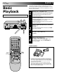 EN PLAYBACK The easiest, most basic operation possible with your video recorder is tape playback. Already-recorded signals on a video tape are read by your video recorder and displayed on your TV just like a TV programme. Basic Playback 1 Y PLA RE W 2 ST SY R U LO CO 1 2 3 4 5 6 7/ 8 9 3 5/8 STOP/EJECT EM q Make sure the window side is up, the rear label side is facing you and the arrow on the front of the cassette is point toward the recorder.