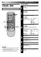 EN INITIAL SETTINGS (cont.) Preparation Clock Set Turn on the TV and select the VIDEO channel (or AV mode). 2 3 4 5 6 DATE+/– 7/ STOP+/– 1 8 2 9 0 1 3 4 2 TURN THE RECORDER ON Press . ACCESS MAIN MENU SCREEN Press MENU twice. ACCESS INITIAL SET SCREEN Press PUSH JOG %fi to place the pointer next to "INITIAL SET", then press OK.