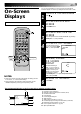 EN You can choose whether or not to have various operational indicators appear on screen, by setting this function ON or OFF. On-Screen Displays 1 Turn on the TV and select the VIDEO channel (or AV mode). 2 1 2 3 4 5 6 7/ 8 9 0 3 4 4 2 1 3 ¶ 7 ¡ TURN ON THE RECORDER Press . ACCESS MAIN MENU SCREEN Press MENU twice. ACCESS FUNCTION SET SCREEN Place the pointer next to "FUNCTION SET" by pressing PUSH JOG %fi, then press OK. ACCESS O.S.D. SCREEN Place the pointer next to "O.S.D.