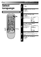 EN INITIAL SETTINGS (cont.) Select Language 1 Turn on the TV and select the VIDEO channel (or AV mode). 1 2 3 3 4 5 6 7/ 8 9 0 2 TURN ON THE RECORDER Press . ACCESS MAIN MENU SCREEN Press MENU twice. ACCESS INITIAL SET SCREEN Press PUSH JOG %fi to place the pointer next to "INITIAL SET", then press OK.