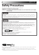 SAFETY FIRST Safety Precautions The rating plate and the safety caution are on the rear of the unit. WARNING: DANGEROUS VOLTAGE INSIDE WARNING: TO PREVENT FIRE OR SHOCK HAZARD, DO NOT EXPOSE THIS UNIT TO RAIN OR MOISTURE. IMPORTANT n Please read the various precautions on page 2 – 4 of this instruction manual before installing or operating the recorder.