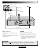STEP QUICK SET UP GUIDE (cont.) 2 INSTALLATION CONNECT VIDEO RECORDER TO TV Place the recorder on a stable, flat surface. Back of TV RF Cable (provided) 21-pin SCART Cable (not provided) Aerial connector 21-pin AV input connector (SCART) Make this connection if your TV has a 21-pin AV input connector (SCART) in order to reduce the possibility of interference. And if you are using a stereo TV, you will need this cable in order to enjoy stereo playback of videotapes.