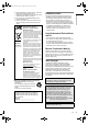 E6851BD_EN.book Page 21 Tuesday, August 2, 2005 5:57 PM Information on copy control Some satellite broadcasts include copy-protected information. If you wish to record them, refer to the following. Disc type / format VR Copy- Copy- Copyfree once prohibited ver.1.1 / ver. 1.2 DVD-RW ver.1.1 / ver. 1.2 CPRM compatible Video ver.1.1 / ver. 1.2 DVD-RW ver.1.1 / ver. 1.2 CPRM compatible DVD-R ver.2.