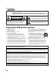 English This apparatus should not be placed in a built-in installation such as a bookcase or rack unless proper ventilation is provided. Make sure to leave a space of 2.8 inches (7cm) or more around this apparatus. Disconnect the mains plug to shut off when find trouble or not in use. The mains plug shall remain readily operable. CAUTION: Danger of explosion if battery is incorrectly replaced. Replace only with the same or equivalent type.