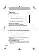 Warning Please follow all the guidelines below. Never try to repair the product yourself! ● To prevent electrical shock, do not open cover. Repair shall be done by service personnel only. ● If the problem cannot be solved in “Troubleshooting” (➔ page 38), unplug the power cord and contact your retailer. If the product is damaged or behaving strangely, stop using it at once! ● Unplug the power cord and contact your retailer.