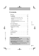 Contents Warning . . . . . . . . . . . . . . . . . . . . . . . . . . . . . . . . . . . ii Included items Inserting batteries into the remote control Attaching and connecting the speaker unit Installation To adjust the vertical position of monitor Connecting external devices Connecting the power cable/Turning on the power Initial settings 04 05 05 05 06 08 10 10 Parts identification . . . . . . . . . . . . . . . . . . . . . . . . 11 Contents Installation. . . . . . . . . . . . . . . . . . . . . . . . . .