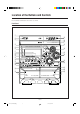 Continued Display Window 1 2 3 4 5 6 p q 7 9 8 See pages in the parentheses for details. Front Panel 1 2 3 4 5 6 7 8 9 p q w e r t y u i o ; a s Carrousel STANDBY/ON button and STANDBY lamp (9) ECO button (9) 7 (stop) button (14 – 19) SET button (9, 11, 15, 20 – 22) CANCEL button (9, 16, 21, 22) DEMO button (8) Display window TAPE 3 button and lamp (9, 17, 19) Pressing this button also turns on the unit.