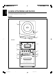 English Location of the Buttons and Controls Become familiar with the buttons and controls on your unit. Main Unit Top view 1 COMPACT DIGITAL AUDIO OPEN 2 D A I L Y T I M E R / S N O O Z E 3 Front view q 4 COMPACT DIGITAL AUDIO 5 STANDBY VOLUME 6 – CD 7 TAPE FM/AM + AUX w #/8 PHONES DOWN 4 UP ¢ 7 AUX REC 8 9 p PUSH OPEN A U T O R E V E R S E MICRO COMPONENT SYSTEM 3 EN01-05_UXG4G3[UW] 3 05.5.