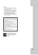 Troubleshooting Possible Cause Correction No power. • The power cord is disconnected. • Plug the power cord into the wall outlet securely. The power is on, but the DVD player does not work. • No disc is inserted. • Insert a disc. (Check the disc indicator in the display window is lit.) No picture. • Your TV does not accept the resolution that you set on the unit. • Please read TV’s owner’s manual then use RESOLUTION button to set the resolution that your TV can accept.