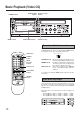 English Various Unique Functions (cont'd) In order to operate by remote control, first press the VCD button. Programming during VIDEO INTRO Operation 1. Press the PROGRAM button on the remote control so that PROGRAM is lit in the display. 2. Press the disc button you want to play, and enter 1 on the keypad. 3. Press the 3 SELECT button and then, after the disc has started to play, press the VIDEO INTRO button. 4.