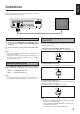 English Connections Make sure that the power to the Player and TV is off before making the following connections. OUT1 OUT2 WIRELESS MIC ANT. AUDIO R NT8C3.58 AUDIO L FREQ ADJUST NTSC ON PAL TV NTSC4.43 VIDEO How to connection 1 Connect the TV’s VIDEO input and AUDIO input terminals to the Player's VIDEO output and AUDIO output terminals. 2 Connect the power cord to your household AC outlet. Notes: • Connection not available with television sets without audio/ video input terminals.