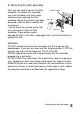 ) Removing the filter assembly. Next you will need to remove the filter Interlock switch assembly. To remove the assembly, use a coin to loosen the three largeslotted screws fastening the filter assembly. When the screws have been Coin etc. loosened, slide the filter assembly out to remove it. • Do not touch the surface of the filter Filter unit or try to remove it from the filter Filter assembly. These actions could damage the filter.