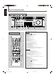 English Operating JVC’s Audio/Video Components Operating Video Components DVD player You can always perform the following operations: IMPORTANT: STANDBY/ON To operate JVC’s video components using this remote control: • You need to connect JVC’s video components through the AV COMPU LINK terminals (see page 32) in addition to the connections using cables with RCA pin plugs (see pages 7 and 8). • Some JVC’s VCRs can accept two types of the control signals— remote code “A” and “B.