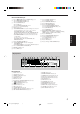 Problemen oplossen Un deze tabel staat een overzicht van enkele veelvoorkomende problemen en gangbare oplossingen die vaak in de praktijk blijken te werken. Mocht u een probleem tegenkomen dat u niet kunt oplossen, neemt u dan contact op met een JVC-service center bij u in de buurt. Nederlands PROBLEEM MOGELIJKE OORZAAK OPLOSSING De display licht niet op. De netspanningskabel is niet aangesloten. Steek de netspanningskabel in het stopcontact. De luidsprekers geven geen geluid.