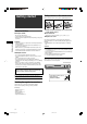 English Troubleshooting Use this chart to help you solve daily operational problems. If there are any problems you cannot solve, contact your JVC’s service center. The power cord is not plugged in. Plug the power cord into an AC outlet. The receiver turns off (enters standby mode). Speakers are overloaded because of high volume. 1. Stop the playback source. 2. Turn on the receiver again, then turn the volume down. Speakers are overloaded because of a short circuit at the speaker terminals.