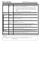 Menu settings NETWORK PACK menu screen items 䢇 indicates default factory setting. Item ✩ indicates items that can also be set from a PC. (☞ page 54) Description Setting NETWORK MAIN SETUP Displays menu screen for network related settings. (☞ page 11) ENCODE SETUP Displays menu screen for setting video and audio compressions. ✩ ✩ FRAME SIZE 䢇320 × 240 160 × 120 Sets the video compression size. 320 × 240: Sets the image size to 320 × 240 pixels. 160 × 120: Sets the image size to 160 × 120 pixels.