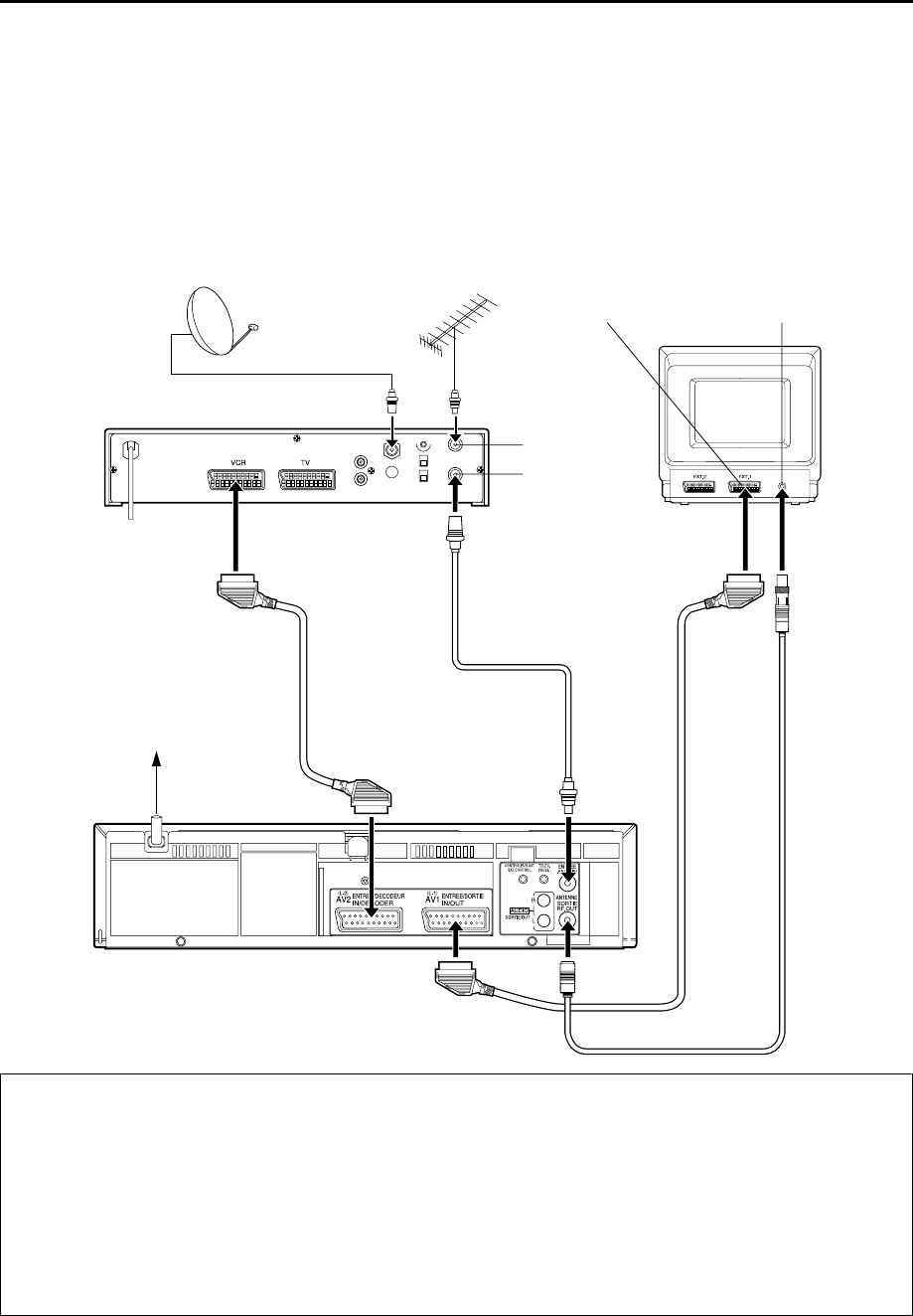 ● Si vous allumez le magnétoscope pendant que le récepteur satellite est en mode d’arrêt, rien n’apparaît sur l’écran TV. Dans ce