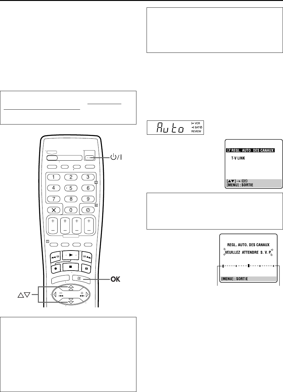 CANAUX/T-V LINK apparaît sur le panneau d’affichage