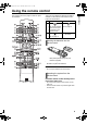 DD-831[UJ].book Page 45 Thursday, March 8, 2007 9:35 AM Operating other devices using the remote control Operating other devices using the remote control (continued) Using the remote control for the TV operation Operate the remote control by pointing it at the TV. Operating a VCR/DBS using the remote control . Remote Usage control button Turns on/off the TV. [TV F] Changes between the TV and [TV/VIDEO] video input. [TV CHANNEL Changes channels. +/–] [TV VOL +/–] Adjusts volume.