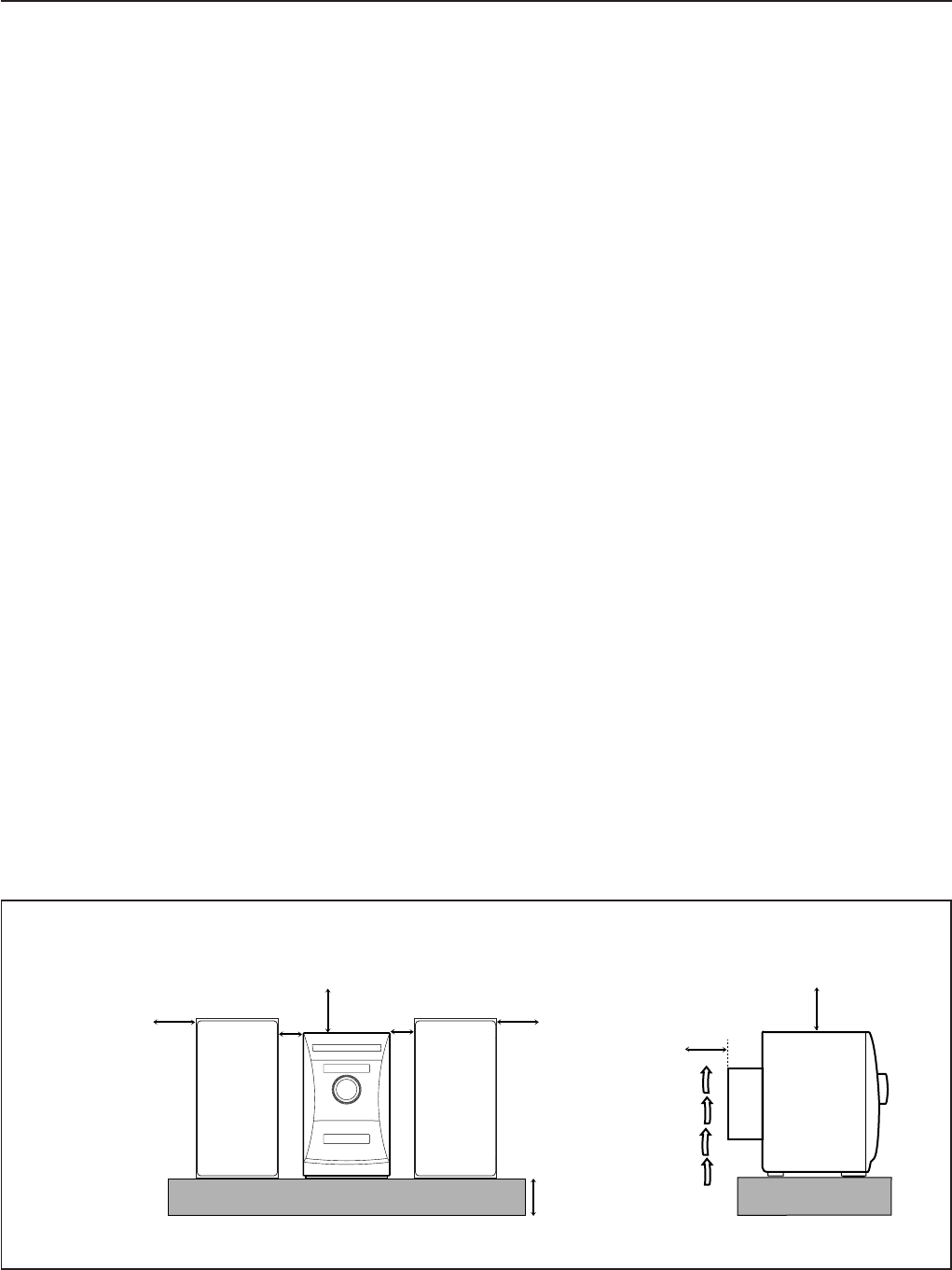 situando el equipo sobre un soporte de 10 o más cm de allura.