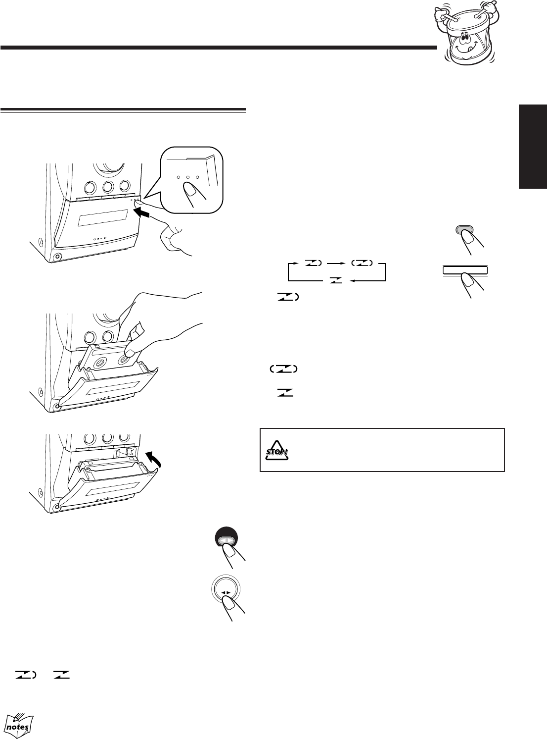 oikealle, paina ¢ tai 4-näppäintä, kun kasetti ei soi.