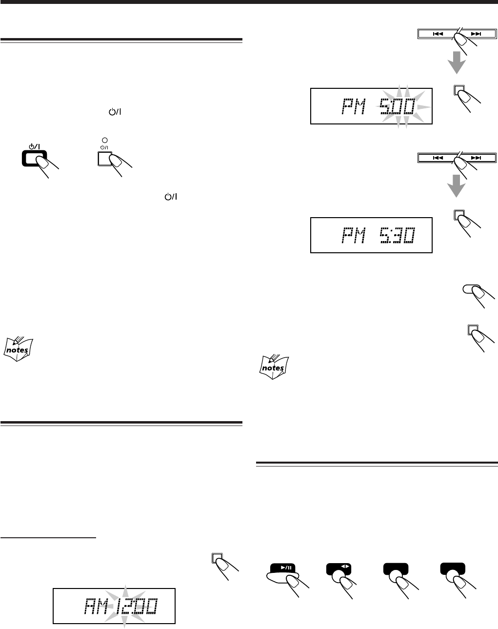 The clock is reset to “AM12:00” right away, while the tuner preset