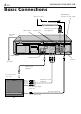 EN 1 Check contents Make sure the package contains all of the accessories listed in “SPECIFICATIONS” (Z␣ pg.␣ 63). 2 Situate VCR 3 Connect VCR to TV Place the VCR on a stable, horizontal surface. The following connections are required. RF Connection 1 Disconnect the TV antenna from the TV. 2 Connect the TV antenna cable to the ANTENNA IN terminal on the rear of the VCR. 3 Connect the supplied RF cable between the TV OUT terminal on the rear of the VCR and the TV’s antenna input terminal.