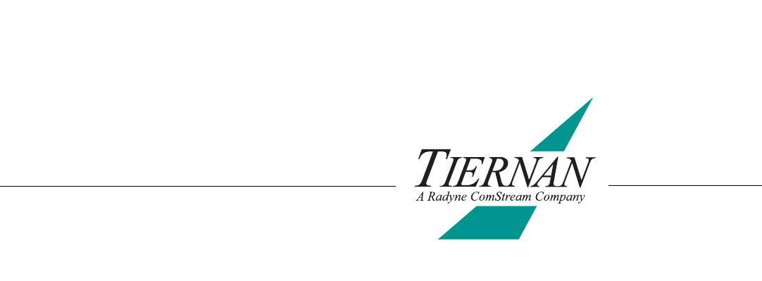 Notice This publication and its contents are proprietary to Tiernan Radyne ComStream, Inc. (Tiernan) and are intended solely for the contractual use of its customers for no other purpose than to install and operate the equipment described herein. This publication and its contents shall not be used or distributed for any other purpose and/or otherwise communicated, disclosed, or reproduced, in any way whatsoever, without prior written consent of Tiernan.
