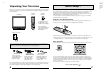 Connections Quick Setup Guide . . . . . . . . . . . . 7 BUTTON FUNCTIONS CONNECTIONS Menu. . . . . . . . . . . . Exit. . . . . . . . . . . . . Display . . . . . . . . . . . Video Status . . . . . . . . Sleep Timer . . . . . . . . . Hyper Surround . . . . . . Muting . . . . . . . . . . . 100+ . . . . . . . . . . . . Return+. . . . . . . . . . . Input. . . . . . . . . . . . VCR Buttons . . . . . . . . DVD Buttons . . . . . . . . TV/CATV Switch . . . . . . VCR/DVD Switch . . . . . .