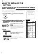 HOW TO INITIALIZE THE SETTING SCREEN DISPLAY AND SELECTIONS IN THE RESET MODE You can set and screen items, picture adjustment items and the volume level to their factory-set (initial) values. RESET screen RESET 1. Press the POWER ( OFF ( —). ) switch to turn the power Are you “Yes” then “No” then sure ? <+> or <–> ON OFF POWER ) The RESET screen is displayed.