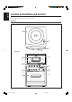 English Location of the Buttons and Controls Become familiar with the buttons and controls on your unit. Main Unit Top view 1 COMPACT DIGITAL AUDIO OPEN 2 D A I L Y T I M E R / S N O O Z E 3 Front view q 4 COMPACT DIGITAL AUDIO 5 STANDBY VOLUME 6 — CD 7 TAPE FM/AM + AUX w #/8 PHONES DOWN 4 UP ¢ 7 AUX REC 8 e r 9 p PUSH OPEN A U T O R E V E R S E t MICRO COMPONENT SYSTEM 3 01-05_UX-H330&H300[US]3.